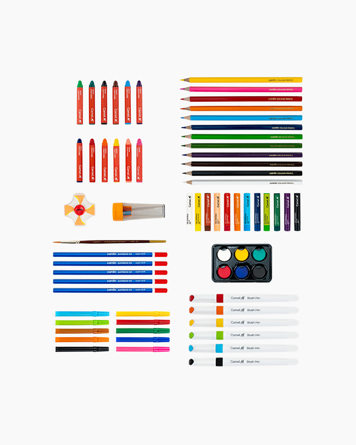A travel-friendly kit packed with an assortment of colour/art materials and stationery, perfect for kids to enjoy creative adventures.